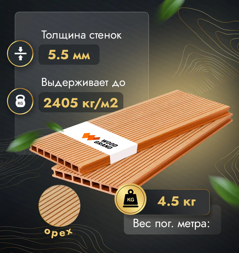 Террасная доска из МПК – это по-настоящему «каменная доска» - революционный материал в загородном строительстве. В основе доски из МПК - минеральная мука и связующие полимеры.